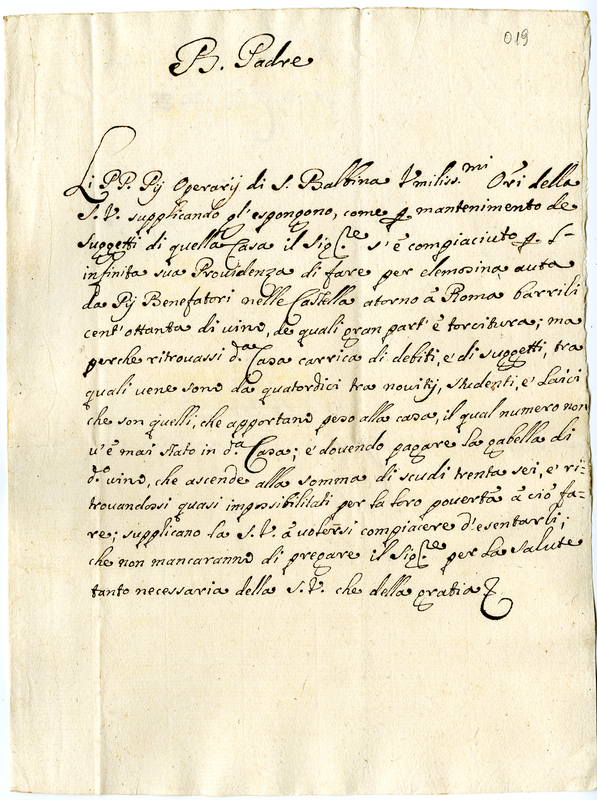 Supplica dei padri di Santa Balbina a Clemente XI (1700-1721)