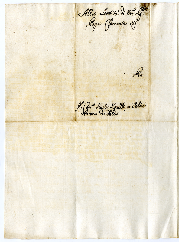 Lettera del canonico Nicola Novelli e di Felice Antonio de Felici a papa Clemente XI (1700-1721)