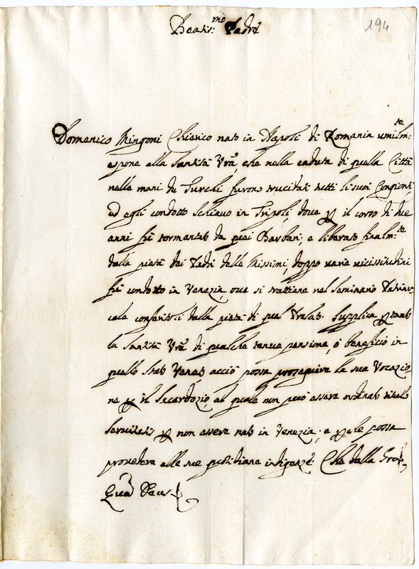 Memoriali, lettere, e suppliche di varie persone sopra diversi affari e bisogni presentate alla santa memoria di papa Clemente XI. 6