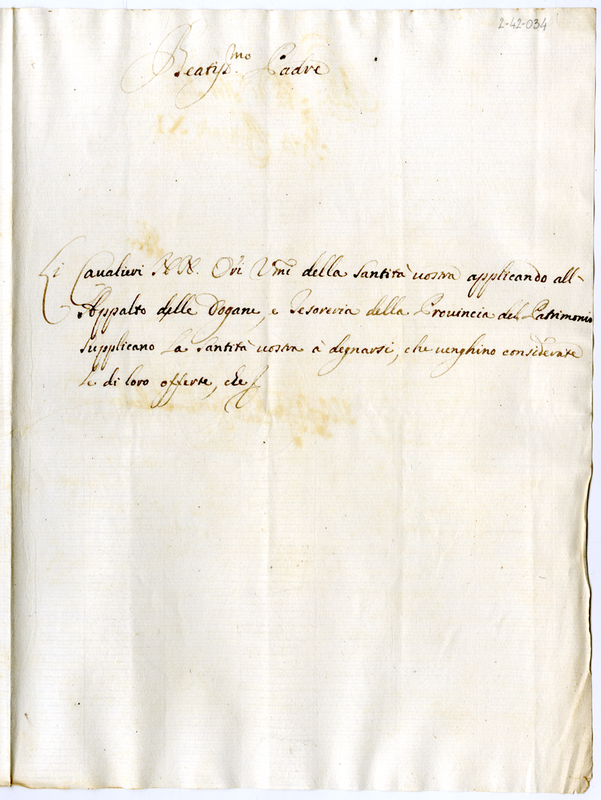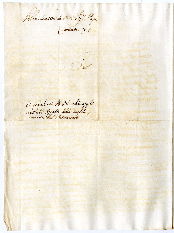 Lettera dei cavalieri N.N. che applicano l'appalto delle dogane a papa Clemente XI (1700-1721)