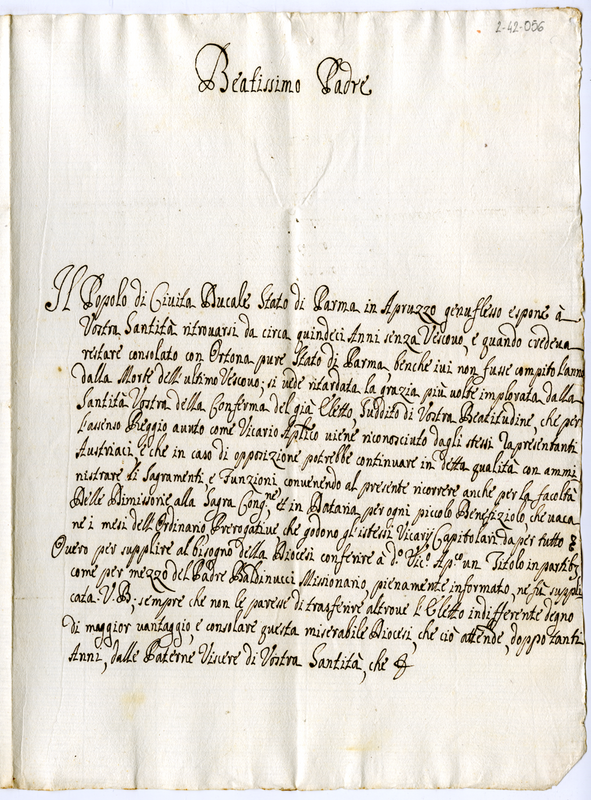 Lettera del popolo di Civita Ducale a papa Clemente XI (100-1721)