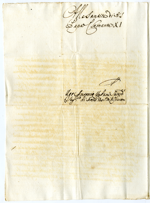Lettera di Ugo Antonio Urbani segretario di monsignor vescovo di Montefiascone a papa Clemente XI (1700-1721)