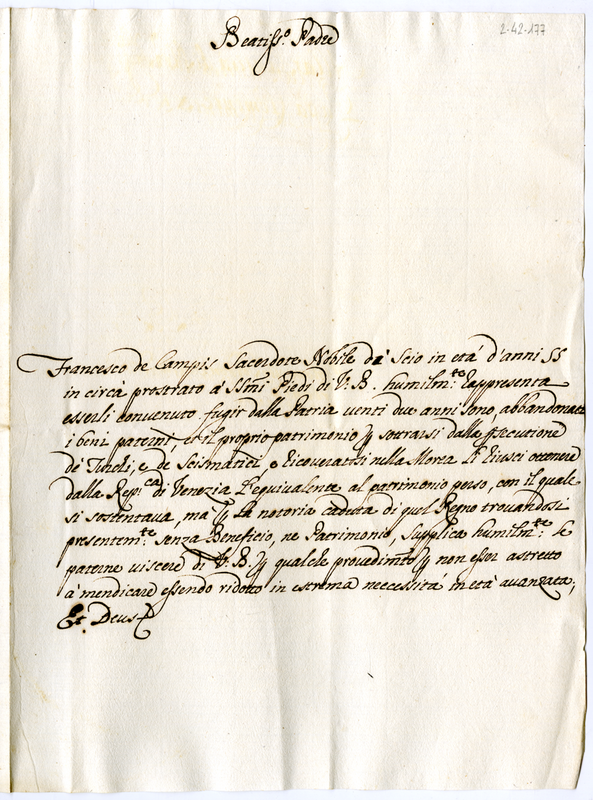 Lettera di Francesco de Campis da Scio (1700-1721)