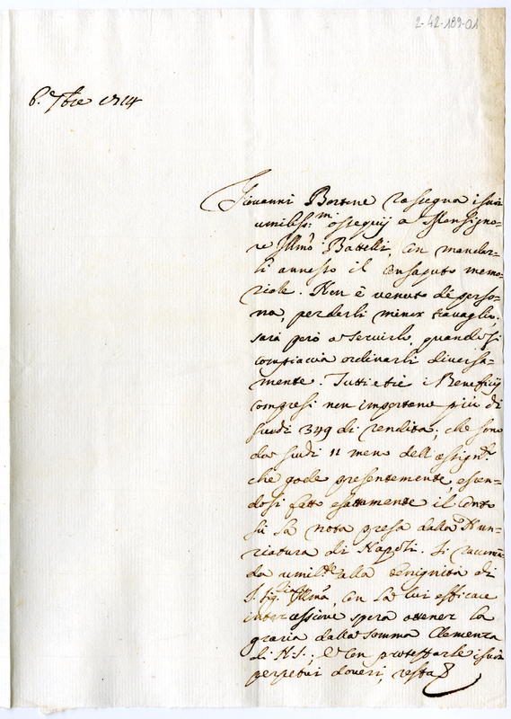 Lettera di Giovanni Bortone a monsignor Battelli (174 settembre 6)