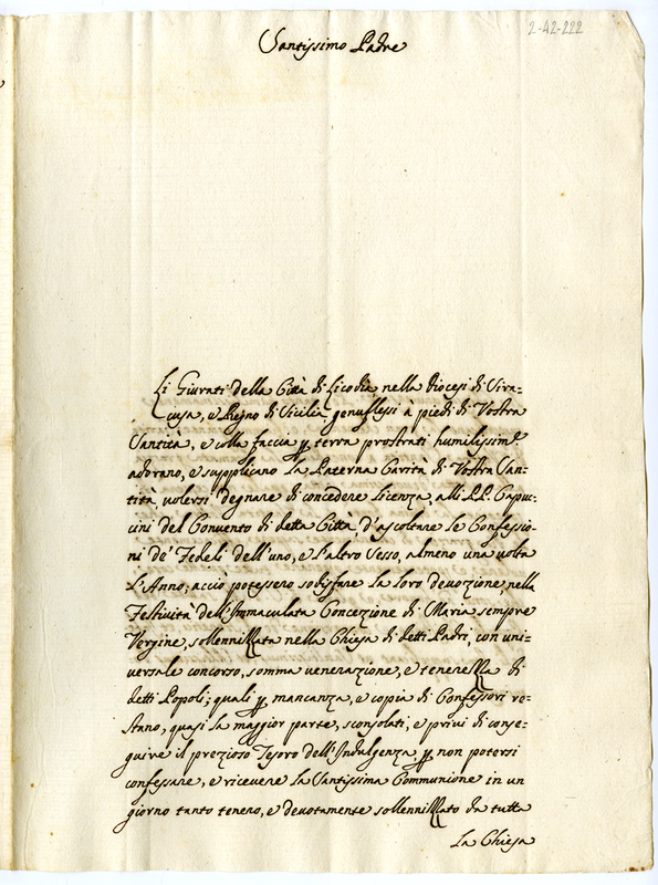 Lettera dei giurati della città di Licodia nella diocesi di Siracusa di Sicilia a papa Clemente XI (1700-1721)