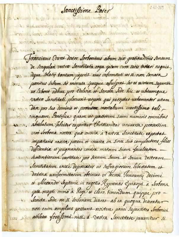 Lettera di Francesco Couret a papa Clemente XI (1700-1721)