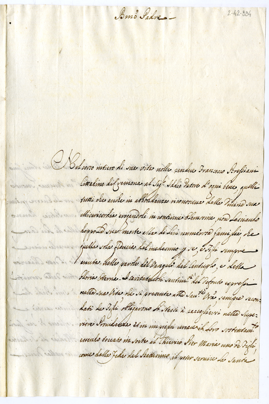 Lettera di Pier Maria Bresciani, chierico cremonese, a papa Clemente XI (1700-1721)
