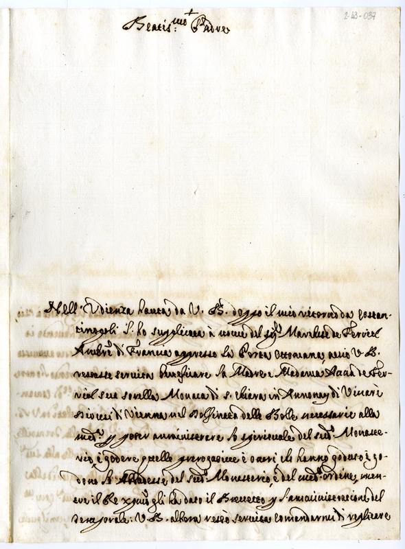 Lettera di fra David di San Carlo carmelitano scalzo a papa Clemente XI (1719 febbraio 26)