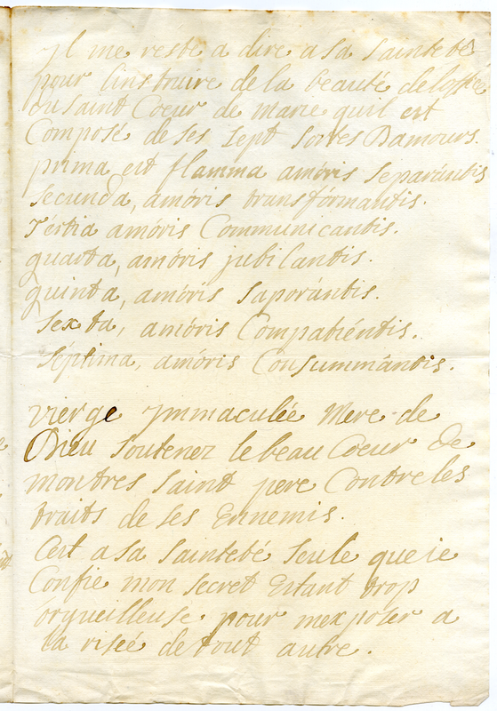 Esorta il pontefice a favorire la festa del Sacro Cuore della madre di Dio nella sua comunità