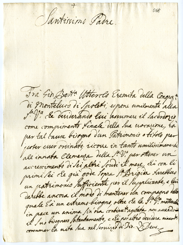 Memoriali, lettere, e suppliche di varie persone sopra diversi affari e bisogni presentate alla santa memoria di papa Clemente XI. 6