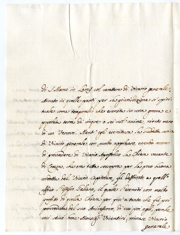 Lettera di Giuseppe Galiani a papa Clemente XI (1700-1721)