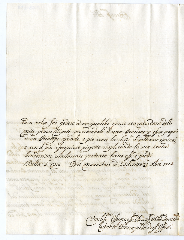 Lettera di Costante Ermenegilda degl'Effetti a papa Clemente XI (1712 dicembre 21)