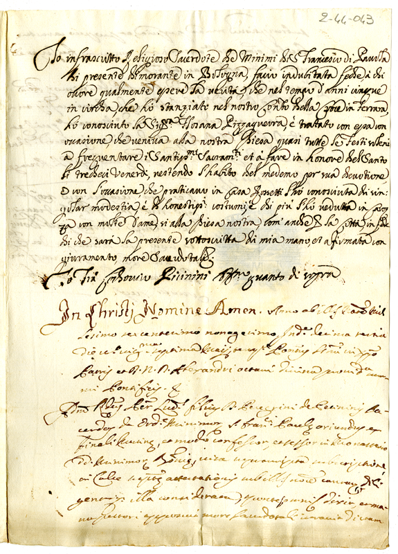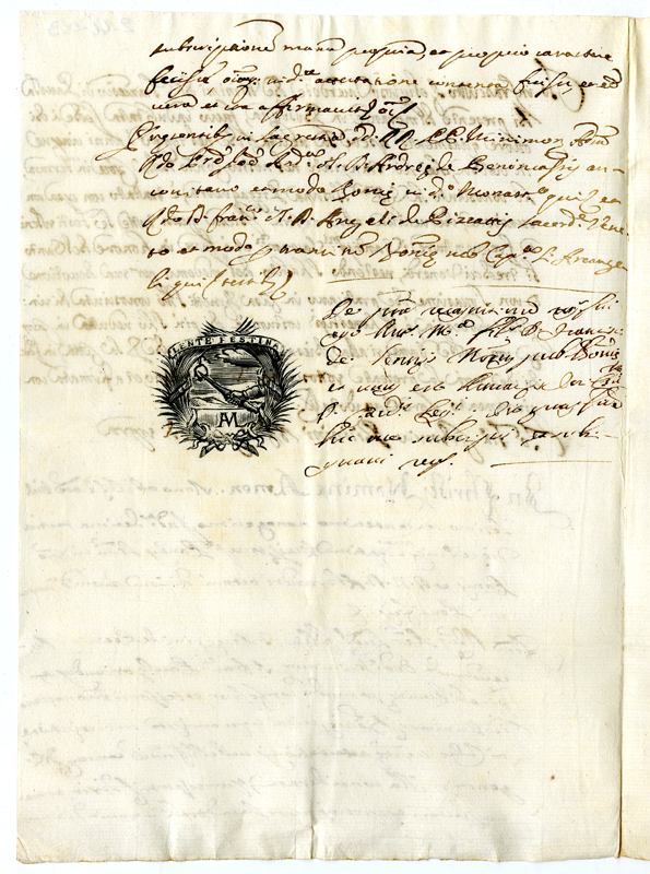 Attestato di buona religiosa vita di fra Lodovico Piccinini in favore di Osanna Pizzaguerra con atto notarile (1690)