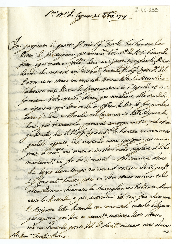 Lettera del cardinale Caracciolo a Domenico Fiorelli (1719 ottobre 21)