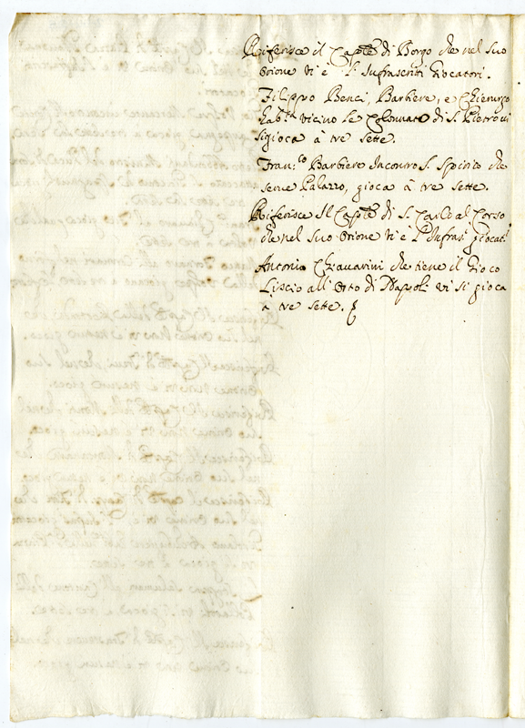 Notizie di vari caporali di piazza sui giocatori presenti nei loro rispetivi rioni (1700-1721)