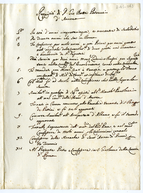 Requisiti di Don Giovanni Battista Petrucci d'Ancona (1700-1721)