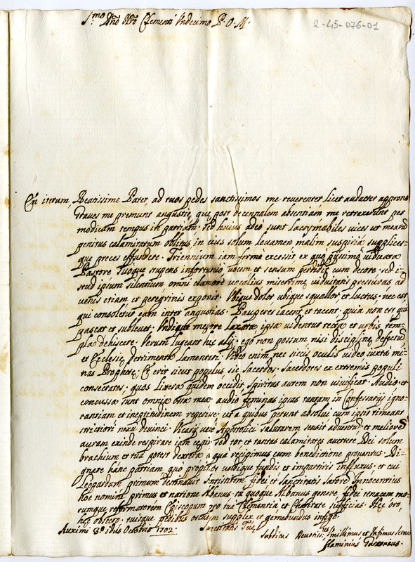 Lettera di Flaminio Garzoni a papa Clemente XI (1703 ottobre 13)