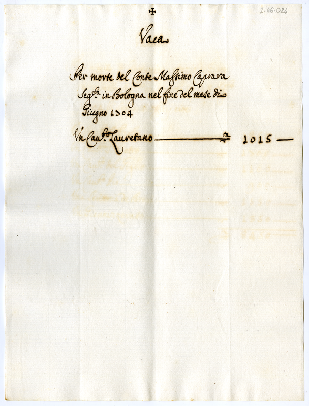 Canonicato vacante per morte di Massimo Caprara (1704 giugno)