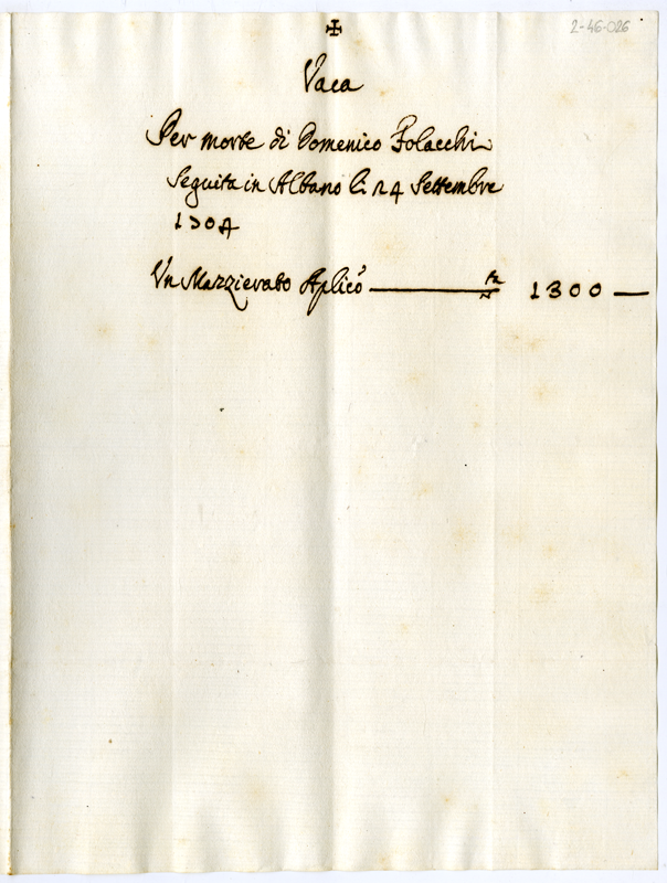 Mazzierato Apostolico vacante per morte di Domenico Folacchi (1704 settembre 24)