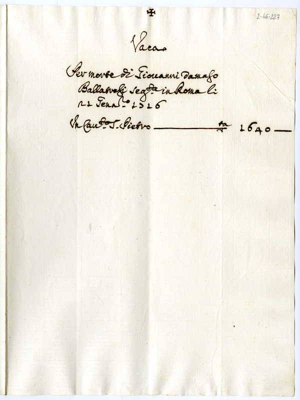 Beneficio vacante per morte di Giovanni Damaso Ballatresi (1716 gennaio 21)