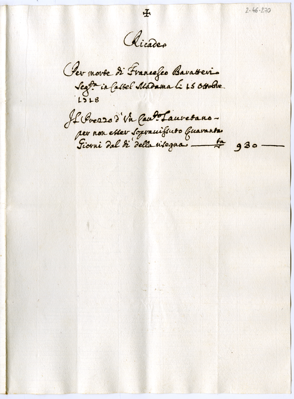 4. Beneficio vacante per morte di Francesco Baratteri (1718 ottobre 15)