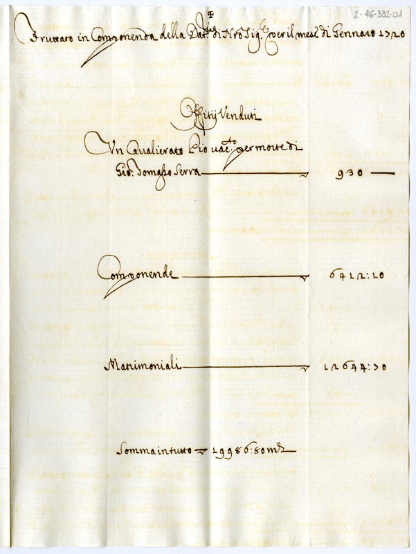 Fruttato in Componenda della Dateria di Nostro Signore per il mese di Gennaro 1720