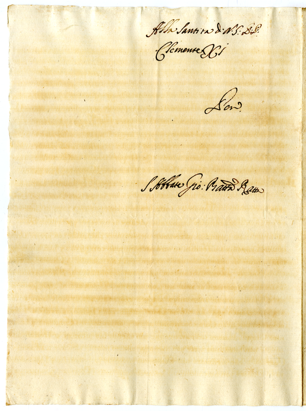 Lettera dell'abate Giovanni Battista Ratta a papa Clemente XI (1700-1721)