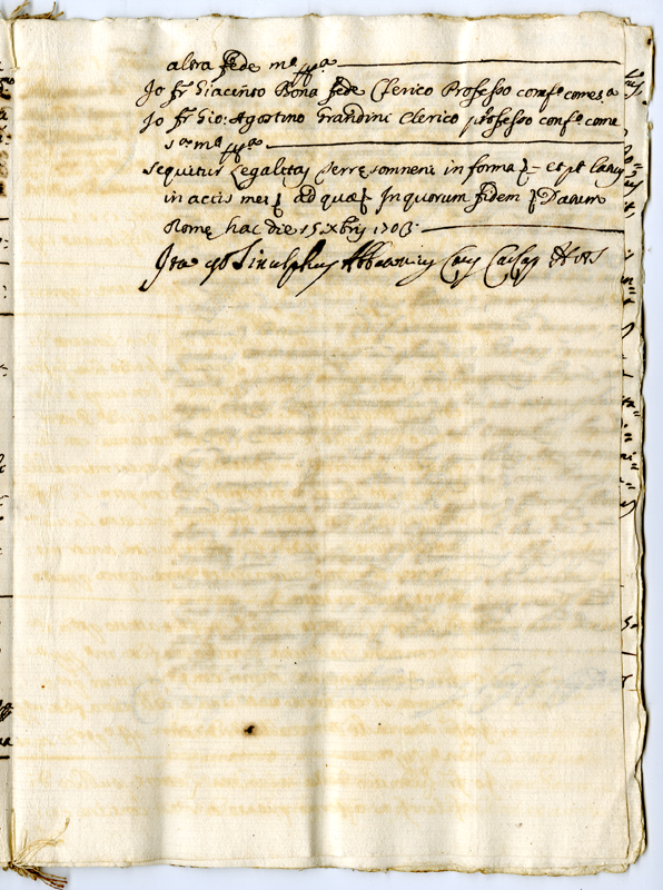 Attestazione de due Padri Cappuccini Missionarii della diocesi di Terracina, e dei Padri del Convento di San Francesco di Sonnino (1703 dicembre 6 - 1703 dicembre 15)