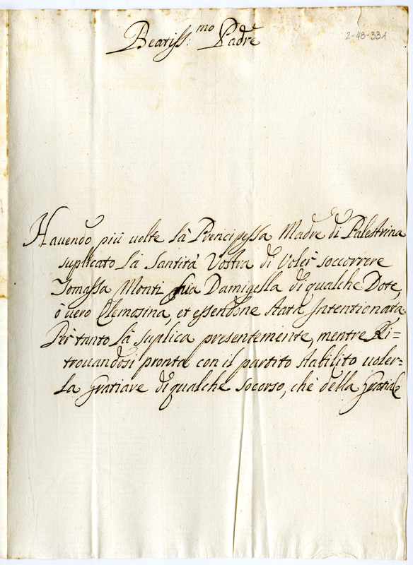 Lettera di Tommasa Monti povera zitella a papa Clemente XI (1700-1721)