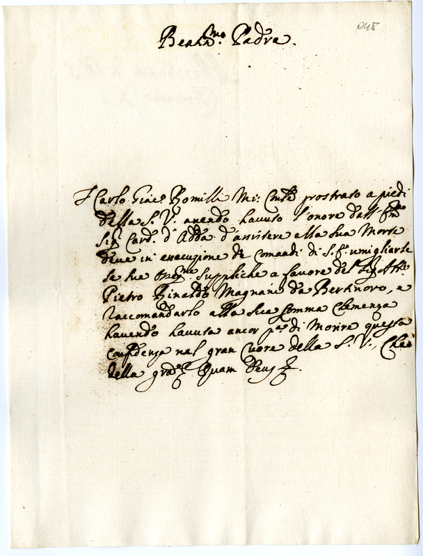 Supplica di Carlo Giacinto Romilli a Clemente XI (1700-1721)