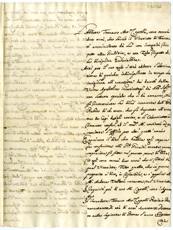Copia di memoriale sull'abate Tommaso Antonio Cepolli, suoi requisiti e copia di lettera del cardinale Paolucci (1704 aprile 12)