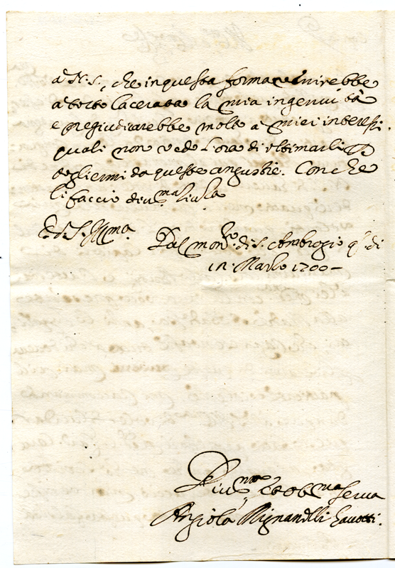 Copia. Lettera di Angiola Mignanolli Gavotti a monsignor Paracciani (1700 marzo 12)
