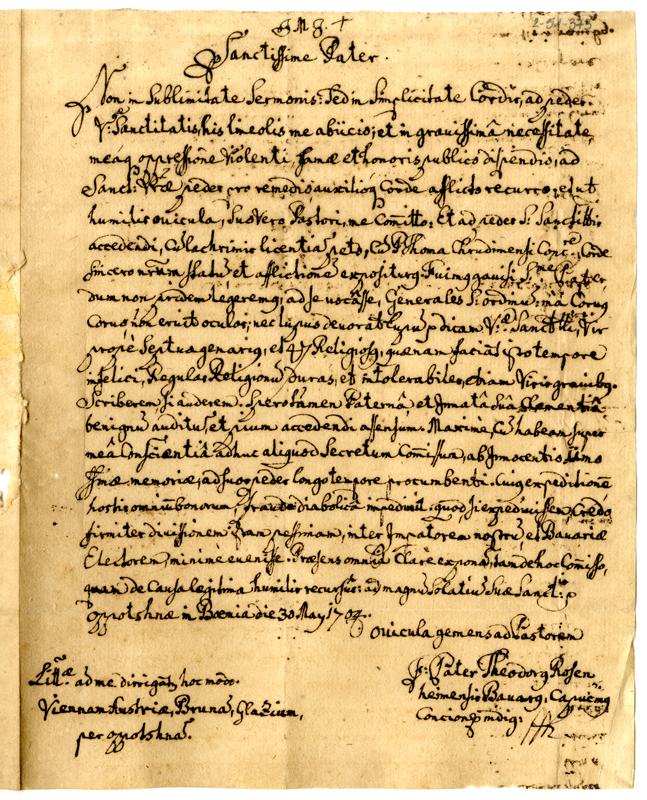 Lettera di Teodoro Rosen a papa Clemente XI (1704 maggio 30)