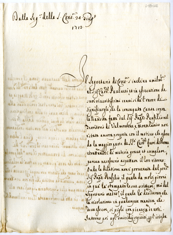 Lettera del segretario della Sacra Consulta al cardinale Paolucci (1713 giugno 24)