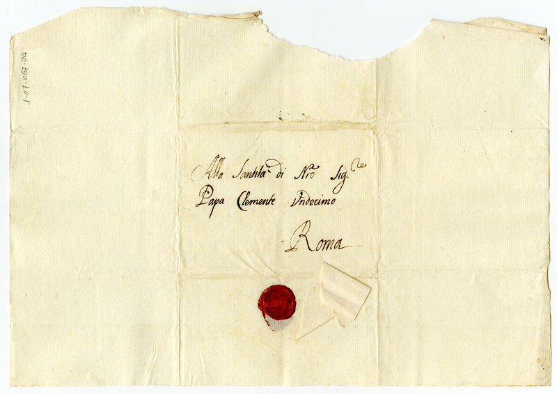 Sovracoperta della lettera di Bianca Maria Sforza Visconti (1712 aprile 2)