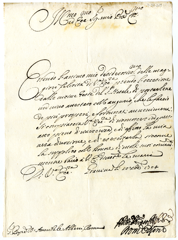 Lettera di Domenico Orsini ad Annibale Albani (1704 dicembre 10)