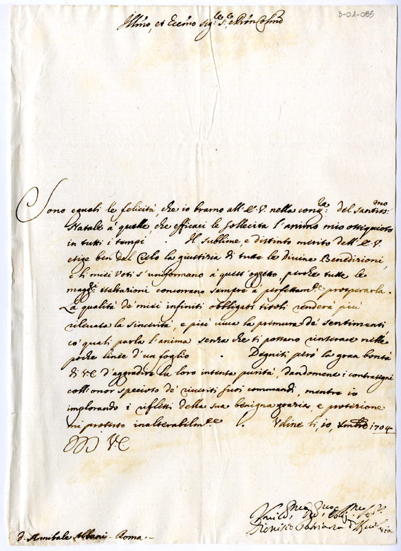 Lettera di Dionisio patriarca di Aquileia ad Annibale Albani (1704 dicembre 10)