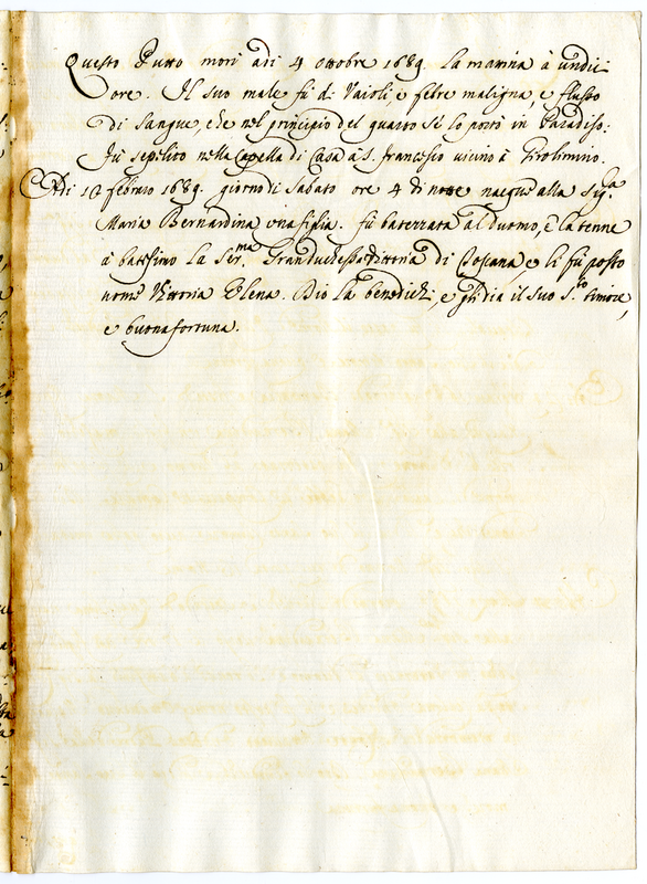 Notizie spettanti alla moglie e figli d'Orazio, notate di pugno dallo stesso Orazio