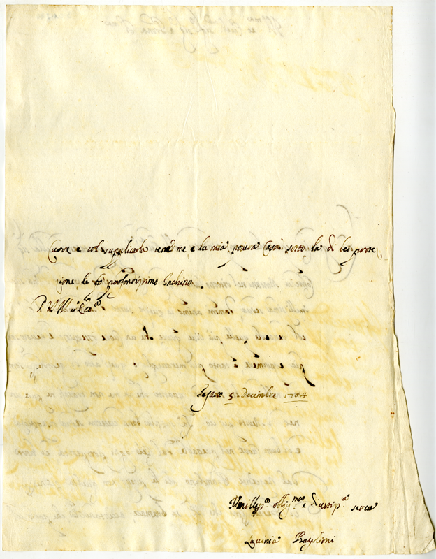 Lettera di Lavinia Baglioni ad Annibale Albani (1704 dicembre 5)