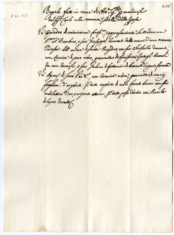 Regalo fatto in nome di altro signore per mandarsi dal signor Carlo alla monaca sorella della sposa