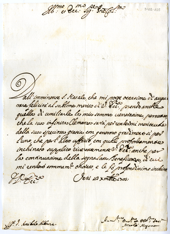 Lettera di Nicolò Negrone ad Annibale Albani (1705 dicembre 13)