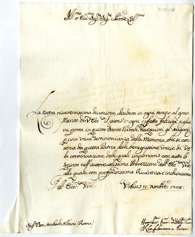 Lettera del confaloniere e priori di Urbino ad Annibale Albani (1705 dicembre 11)