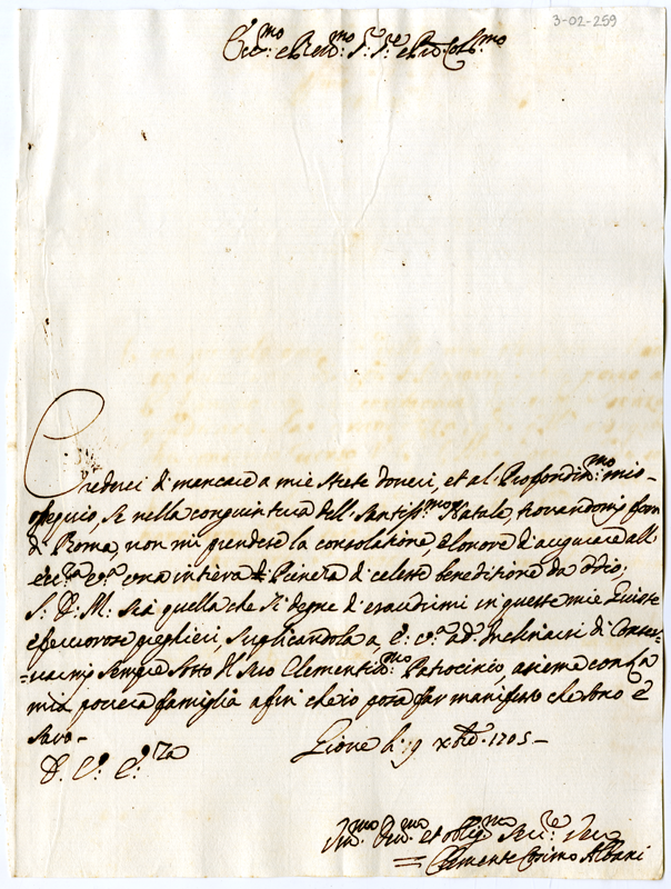Lettera di Clemente Cosimo Albani ad Annibale Albani (1705 dicembre 19)