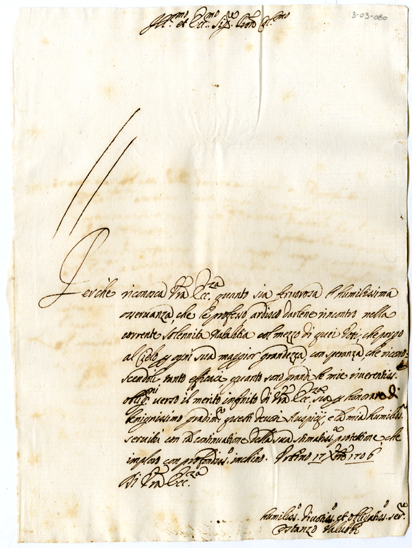 Lettera di Costanzo Valubbi ad Annibale Albani (1706 dicembre 17)