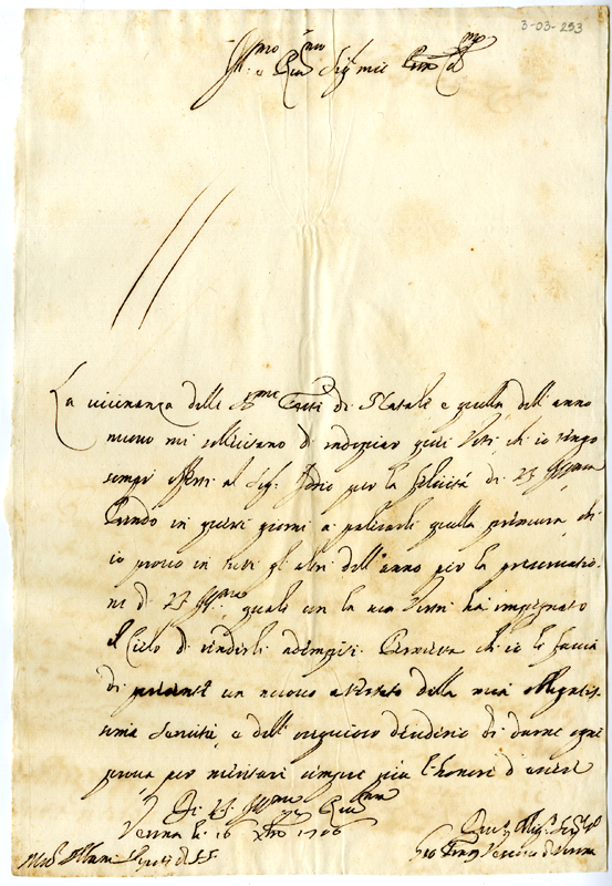 Lettera di Gianfrancesco vescovo di Verona ad Annibale Albani (1706 dicembre 16)