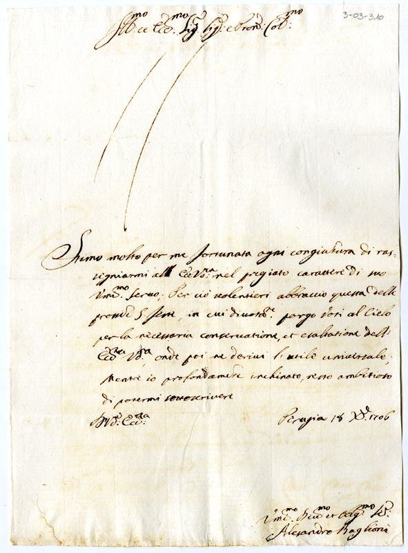 Lettera di Alessandro Baglioni ad Annibale Albani (1706 dicembre 18)