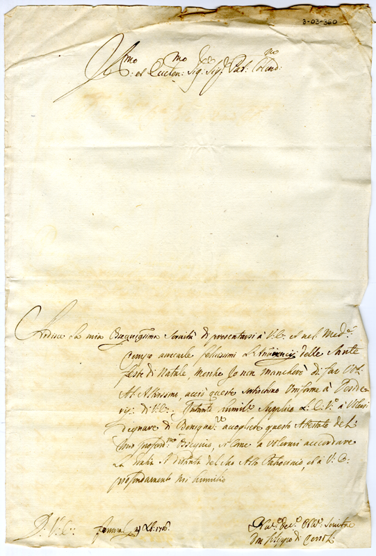 Lettera di Domenico Filippo di Cersoli ad Annibale Albani (1706 dicembre 21)