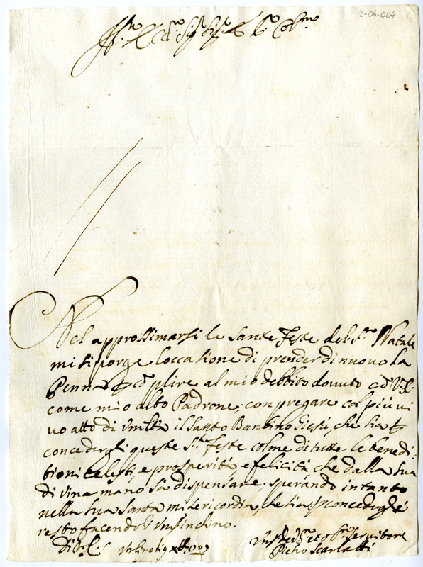 Lettera di Pietro Scarlatti ad Annibale Albani (1707 dicembre 9)