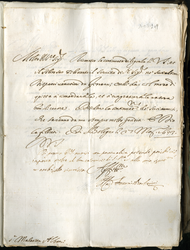 Lettera del cardinale Barberini Antonio senior a Malatesta Albani (1643 maggio 27)
