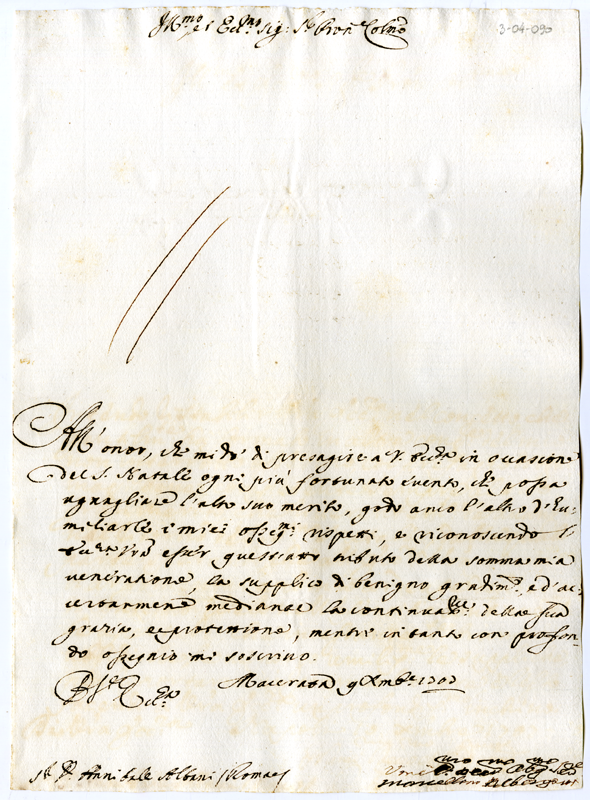 Lettera di Marcellino Albergotti ad Annibale Albani (1707 dicembre 9)